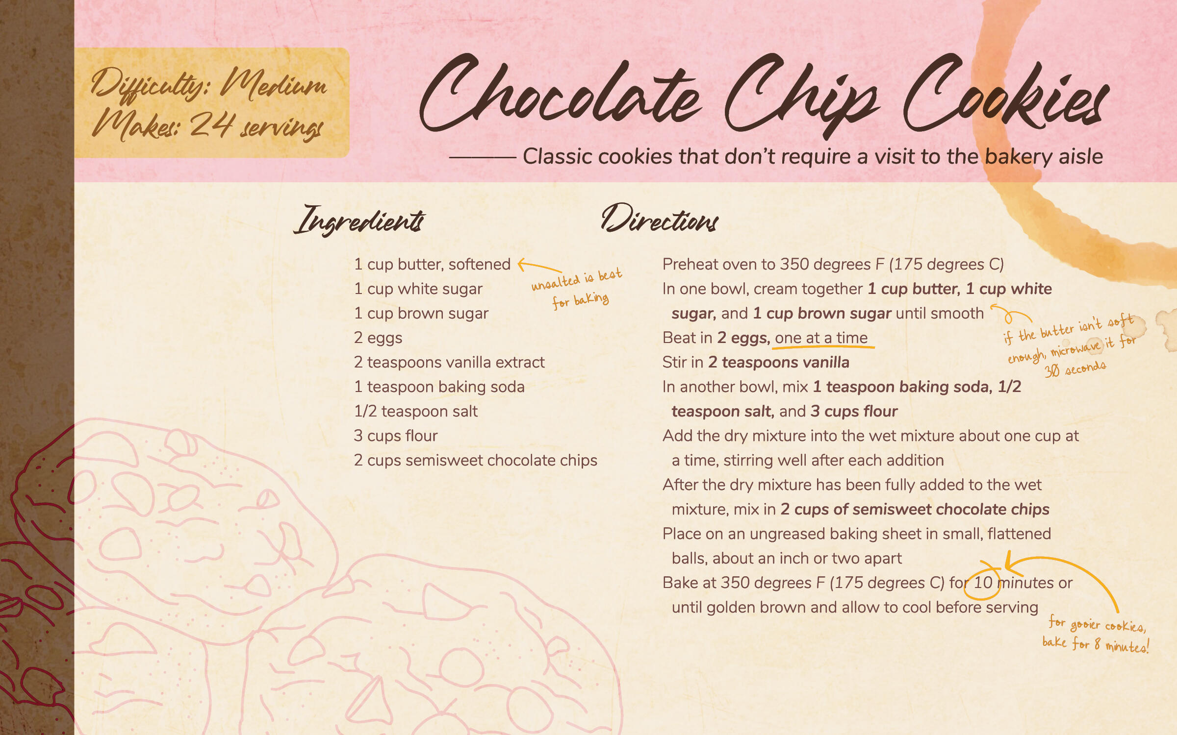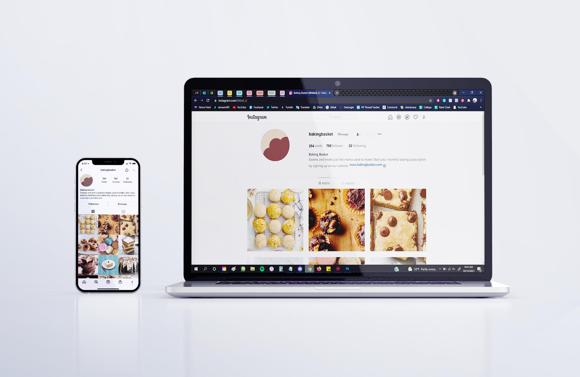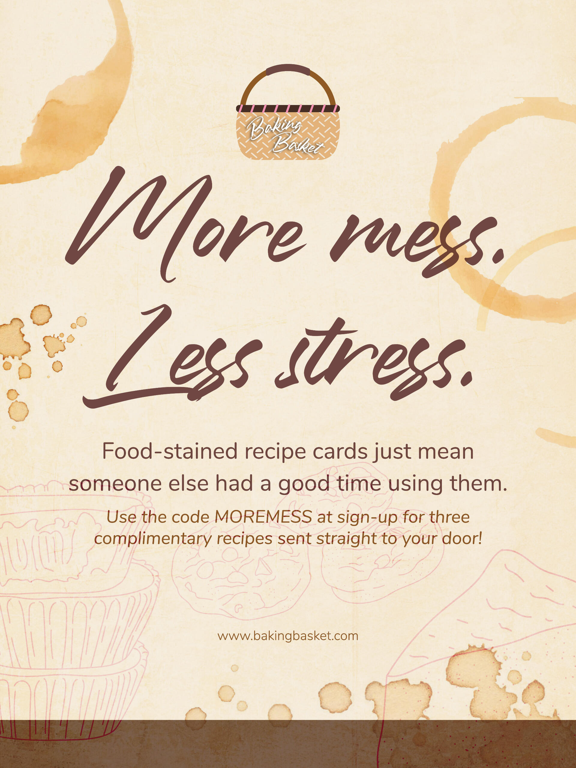 Overview: Baking Basket is a fictional meal subscription service created to practice branding and other design elements. Subscribers would receive weekly or monthly boxes containing ingredients for different baked recipes, such as cookies or cakes. It plays into that "family recipe" stereotype, or "just like momma used to make," giving each recipe a traditional feel with a modern twist. Each recipe includes "handwritten" notes, tips, and tricks, as though being taught by an older family member how to perfect the recipe.Brief: Create and execute Baking Basket's brand standards, including designing logos, letterhead, envelopes, business cards, social media avatars, branded objects, and identifying color palettes, type choices, brand voice, copy direction, and a brand standards manual.Solution: After determining the company's brand standards, utilization of its color palette and "antiquated" roots gave its solutions an old-but-modern feeling that anyone could find charming.