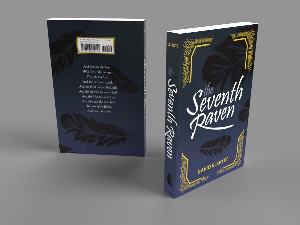 Overview: Students were tasked with redesigning the dust jacket of a book that was not a part of a larger series or franchise, but could instead stand on its own.Brief: Redesign an already-existing book cover in a manner that does not copy the original design, but still gives insight into the book's themes and story.Solution: Dark, cool colors give way to the edgier theme of the book, with pops of gold hinting towards its fantasy element. Flowing script-like typography has a poetic feel, telling the reader that the story is in verse before they open the book. The seven feathers scattered across the jacket represent the seven characters the story centers around.
